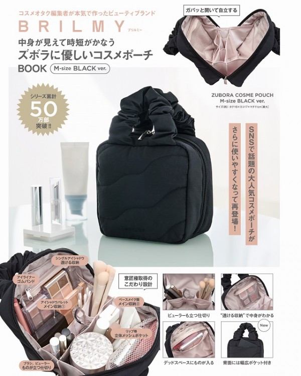 BRILMY 中身が見えて時短がかなう ズボラに優しいコスメポーチ M-size BLACK ver. SPECIAL PACKAGE│宝島社の通販 宝島チャンネル