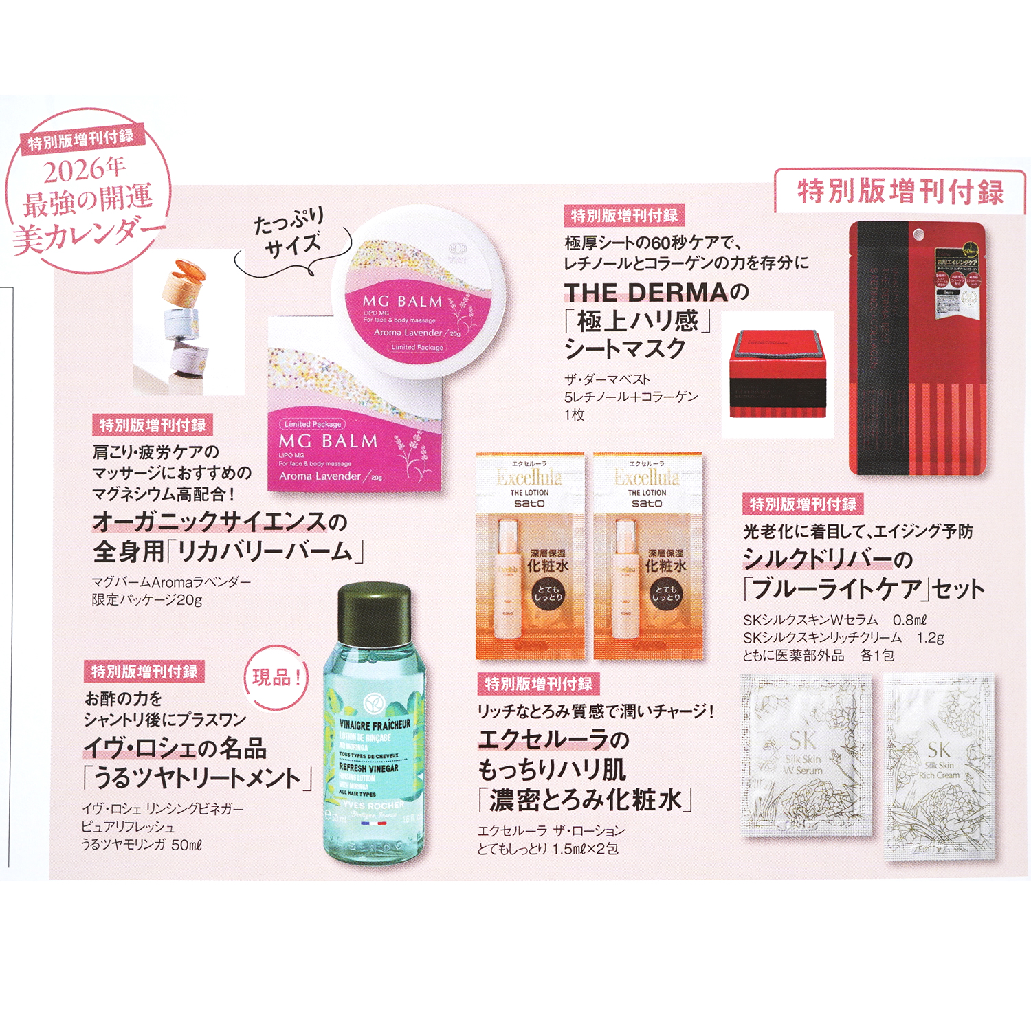 【次号予告】美ST (ビスト) 2026年 2月号特別版増刊 《特別付録》 オーガニックサイエンスの全身用「リカバリーバーム」、THADERMAの「極上ハリ感」シートマスク、イヴ・ロシェの名品「うるツヤトリートメント」、エクセルーラのもっちりハリ肌「濃密とろみ化粧水」