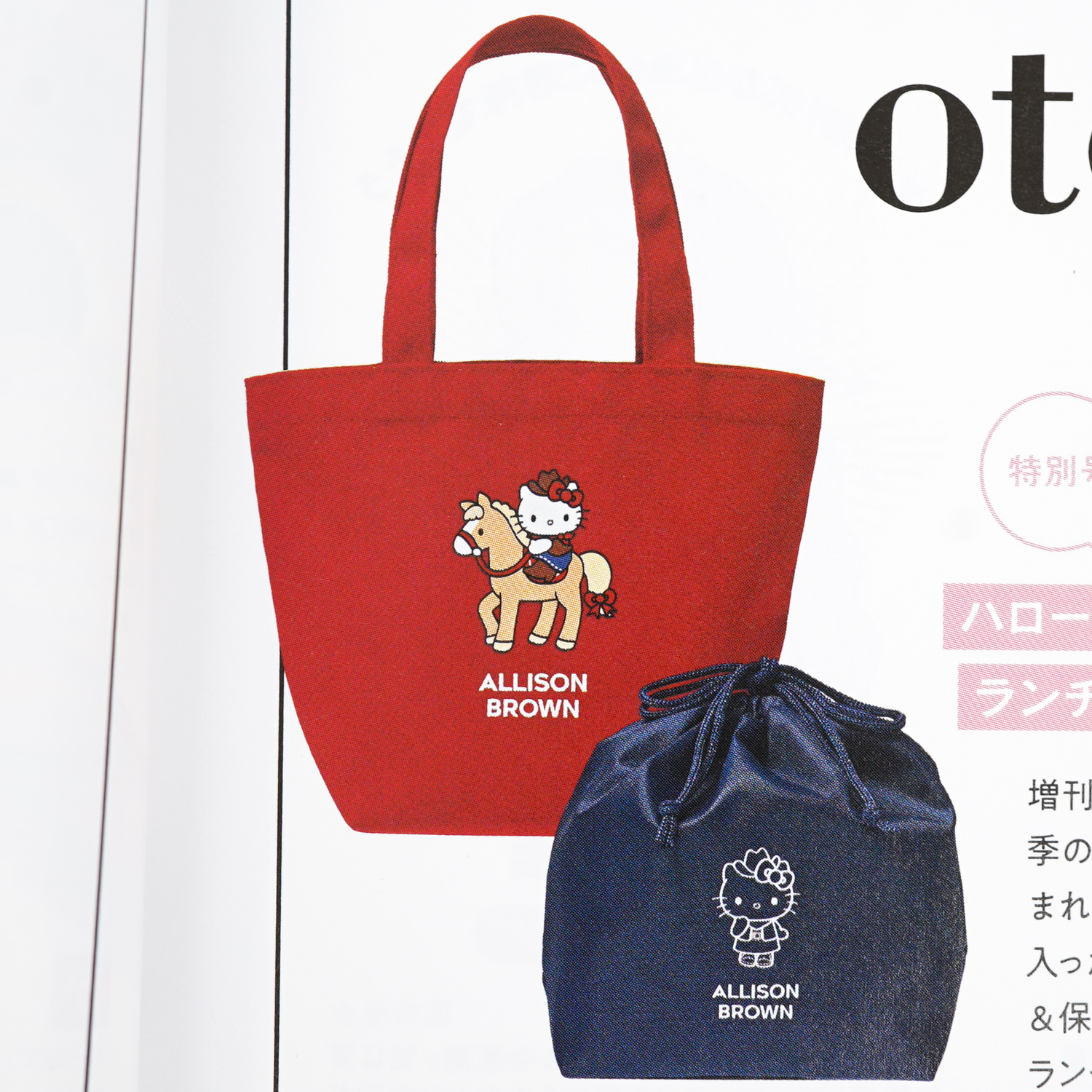 特別号「オトナスウィート」の付録は、ハローキティ×アリソンブラウンのセットでも単品でも可愛いトート&巾着が完成。