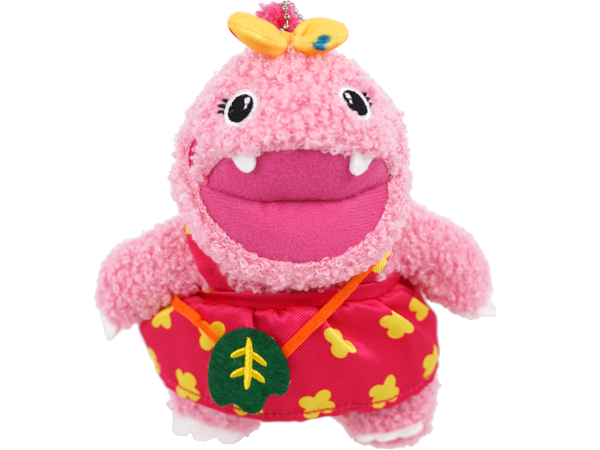 顔パーツは刺しゅうで正確に再現していたり牙や手足の爪、バッグの葉っぱはフェルトで丁寧に作っているので愛着の沸きやすいぬいぐるみだと思います。ぬいぐるみの口の開き具合はパッケージ掲載の参考写真よりも大きめでしたが、中にはいっている綿のボリューム調節によって口を閉じ気味にできました。
