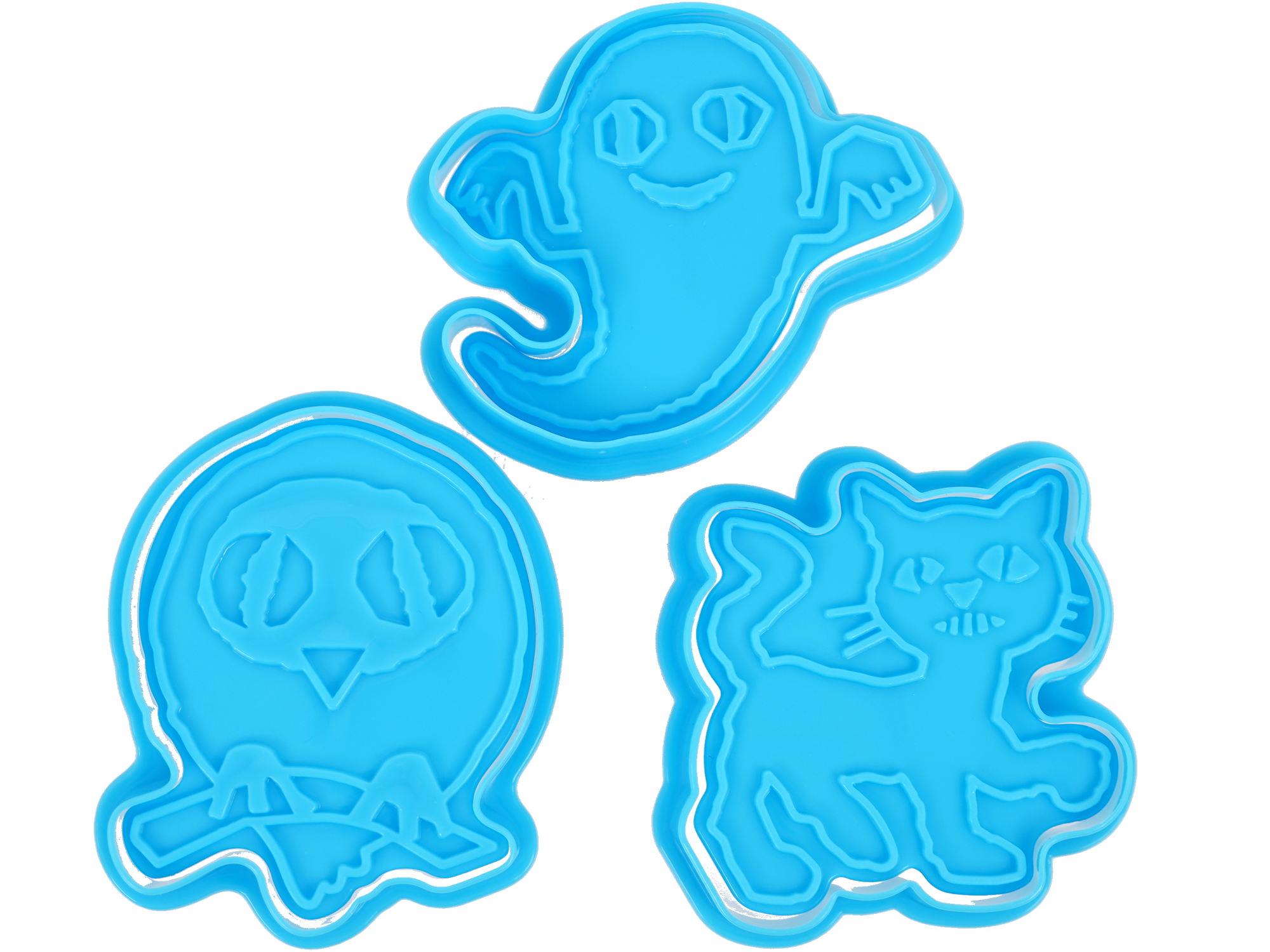 クッキー生地に押し当てて型を抜いたり、ごはんを押し詰めておばけ弁当を作ったり。クッキーもサンドイッチも、型を抜いてスタンプを押し当てれば物語の世界に大変身。