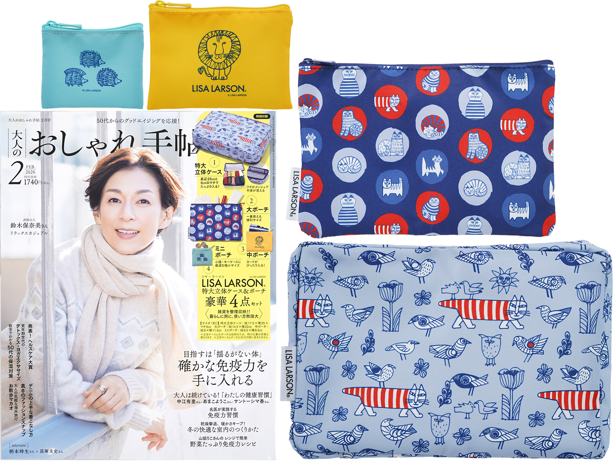 | 発売日:2026年1月7日 宝島社 大人のおしゃれ手帖 2026年 2月号 1,740円(税込) 《付録》 LISA LARSON®[リサ・ラーソン] 特大立体ケース&ポーチ豪華4点セット |