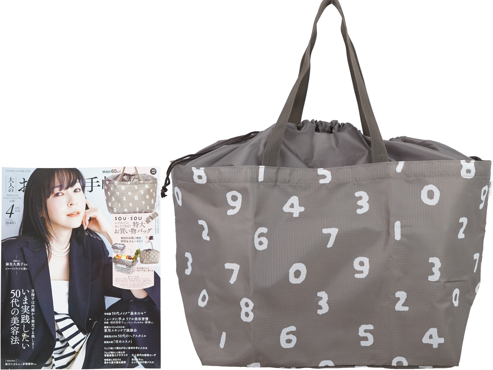 | 発売日:2026年3月6日 宝島社 大人のおしゃれ手帖 2026年 4月号 1,640円(税込) 《付録》 sou・sou [ソウ・ソウ] 買い物かごにセットできる!特大お買い物バッグ |
