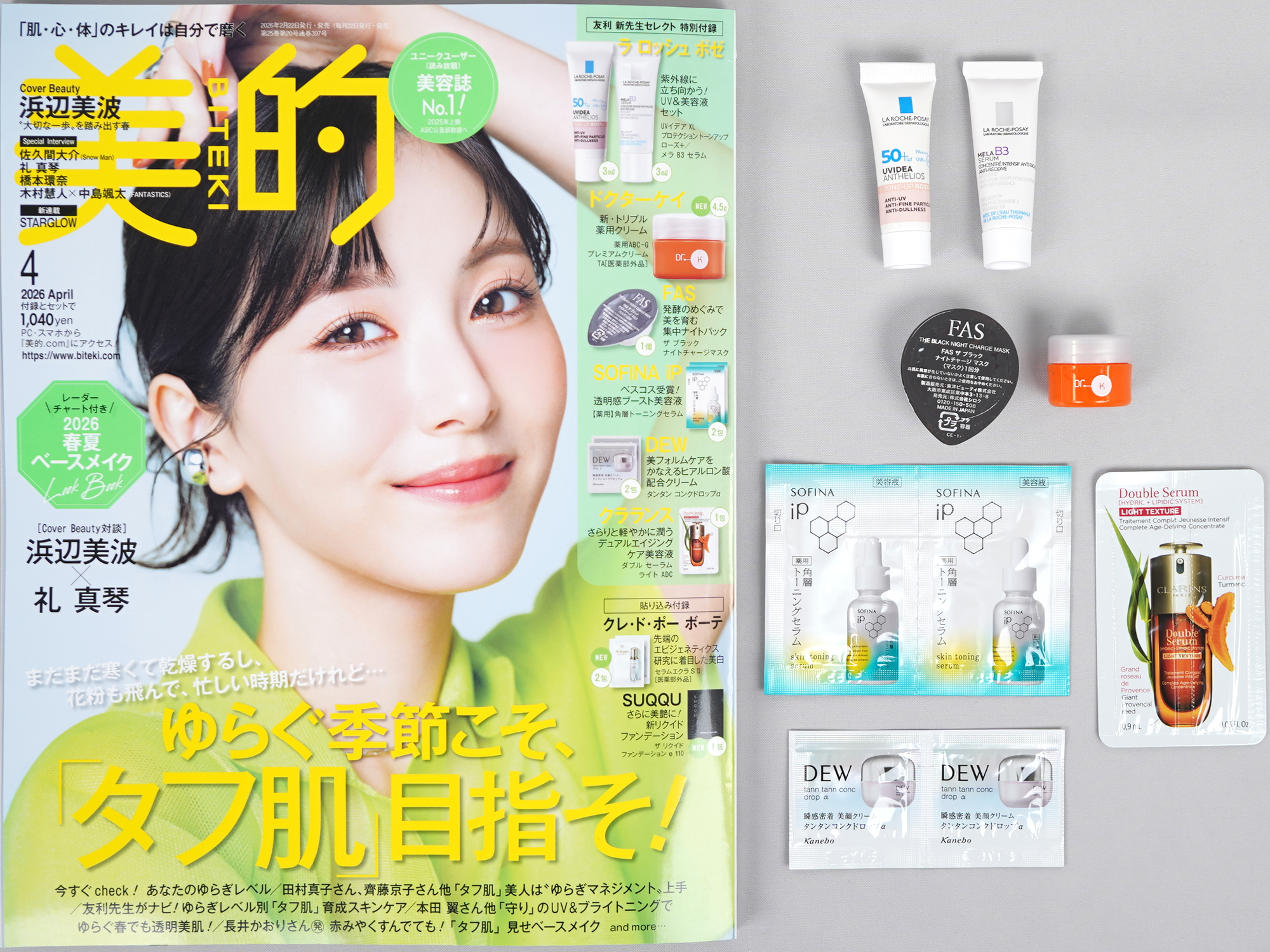 | 発売日:2026年2月20日 小学館 美的 2026年 4月号 1,040円(税込) 《付録》 ラ ロッシュ ポゼ ドクターケイ FAS DEW SOFINA iP クラランス |