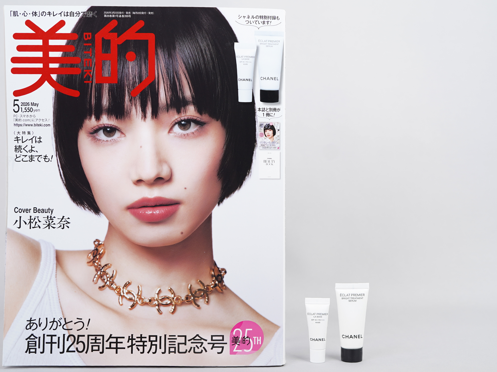 | 発売日:2026年3月21日 小学館 美的 2026年 5月号 1,550円(税込) 《付録》 シャネル 新作ブライトニング美容液&大人気メイクアップベース |