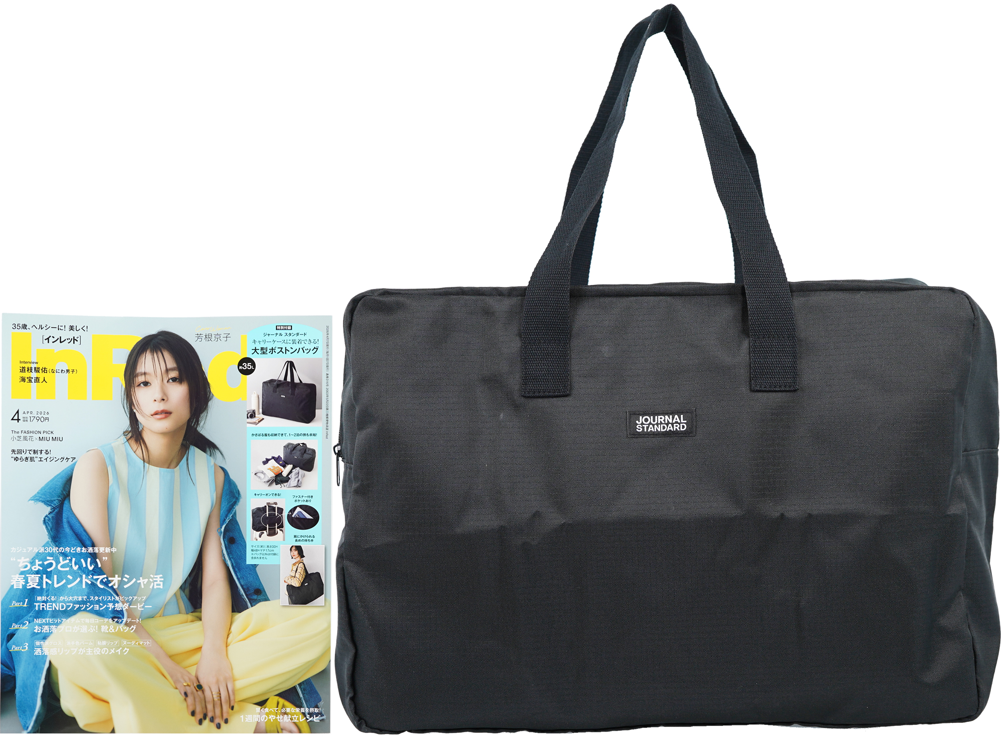 | 発売日:2026年3月6日 宝島社 In Red (インレッド) 2026年 4月号 1,790円(税込) 《付録》 ジャーナル スタンダード キャリーケースに装着できる!大型ボストンバッグ |