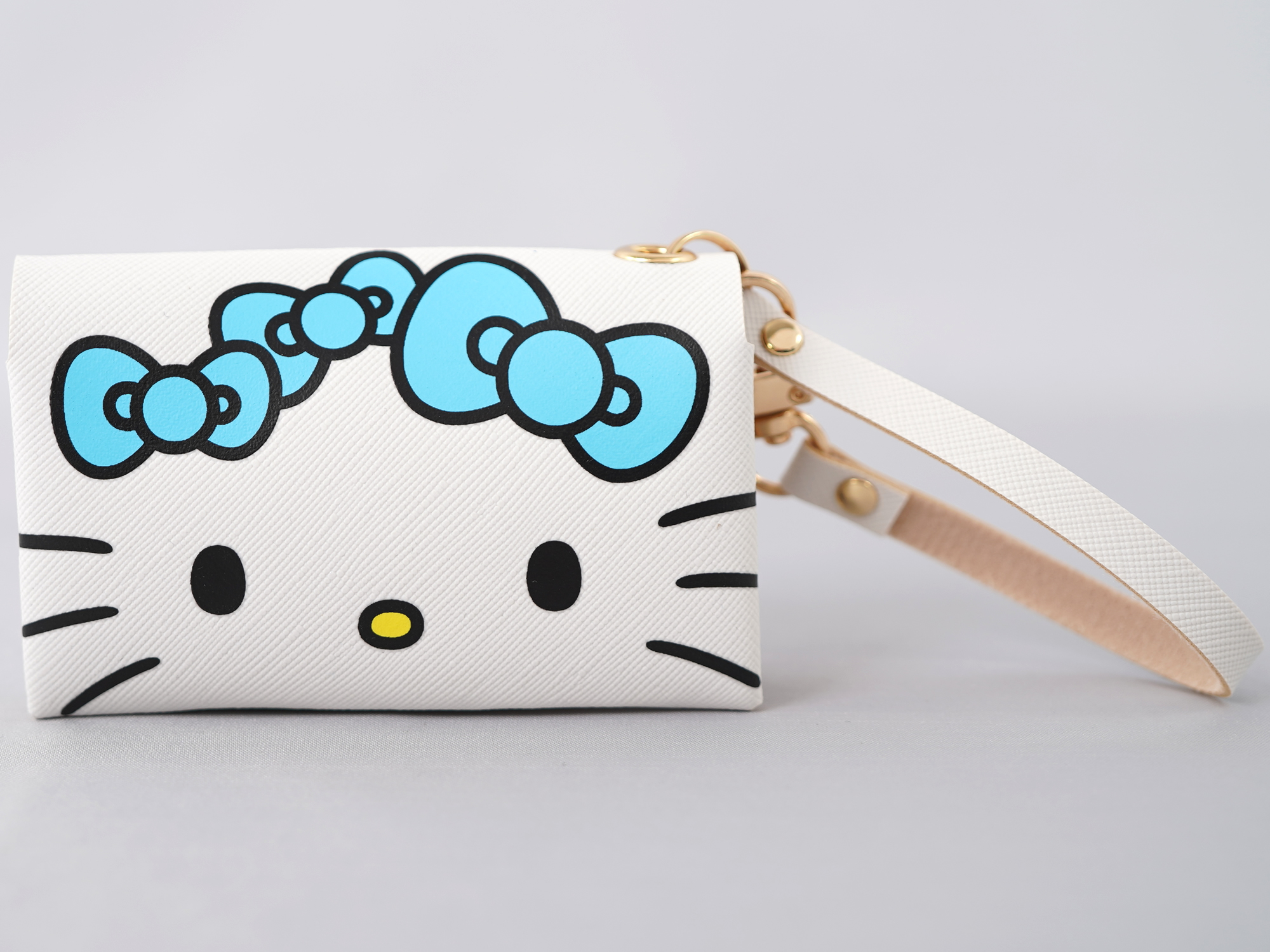 みんな大好き♡ハローキティがみずいろのリボンを纏っておめかししたマルチケーススナップボタン仕様で使いやすい♡