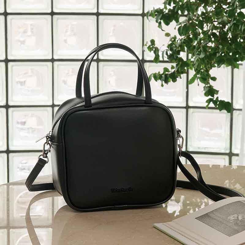 レザー調素材が高級感溢れるシンプルなスクエアバッグ