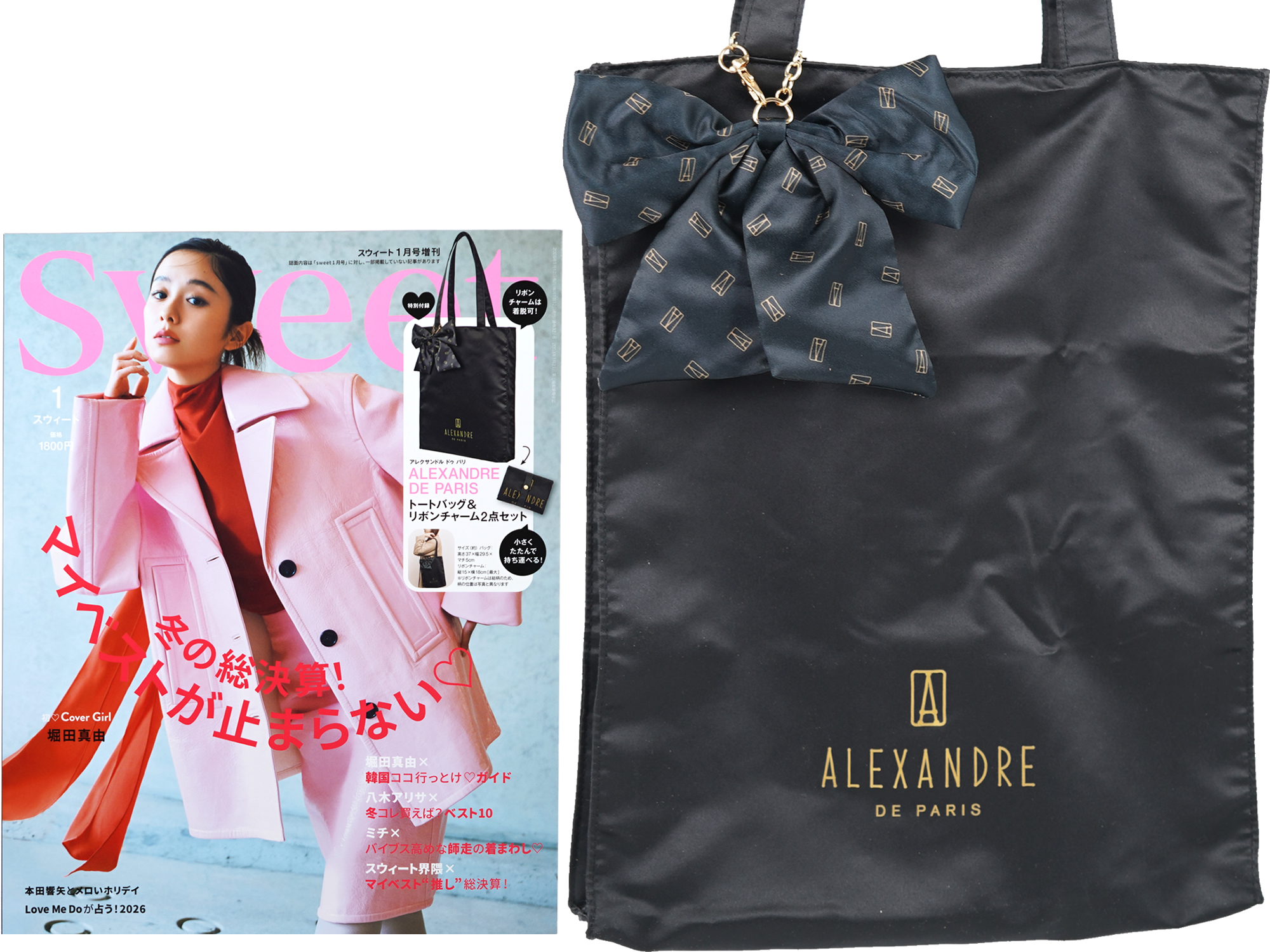 | 発売日:2025年12月12日 宝島社 sweet (スウィート) 2026年 1月号増刊 1,800円(税込) 《付録》 ALEXANDRE DE PARIS [アレクサンドル ドゥ パリ] トートバッグ&リボンチャーム2点セット |